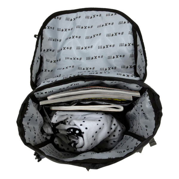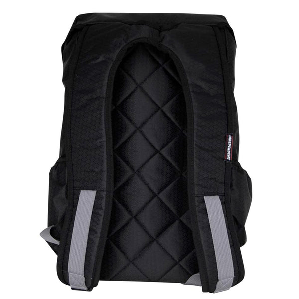 - Features diamond ripstop body, durable PVC bottom, padded back, adjustable cinched main compartment with flap/clips